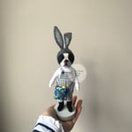 Boston Bunny Art Doll - Blue Vertical Stripes